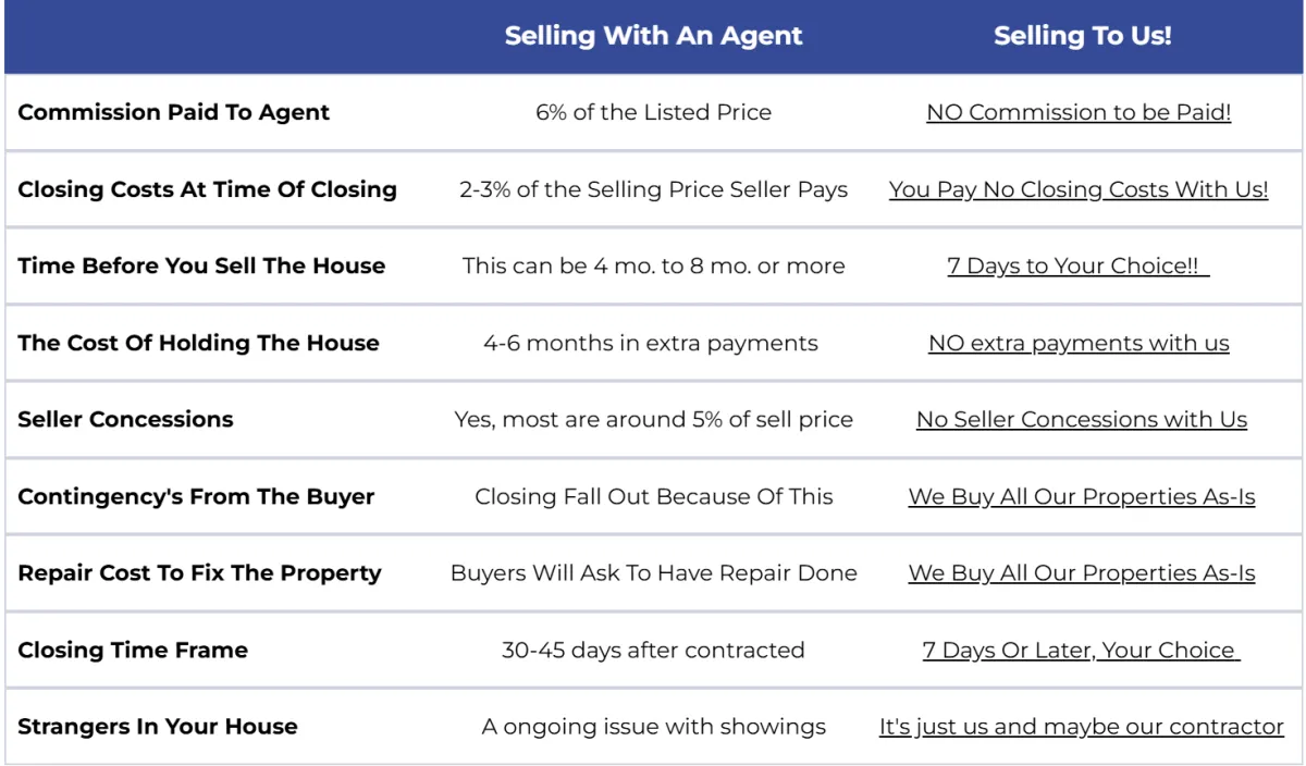 When you start to look at the cost and the extra fees and the extra headaches of selling with an agent to bring you, too will see why so many other people have chosen to take an alternative method when selling their house in our area.